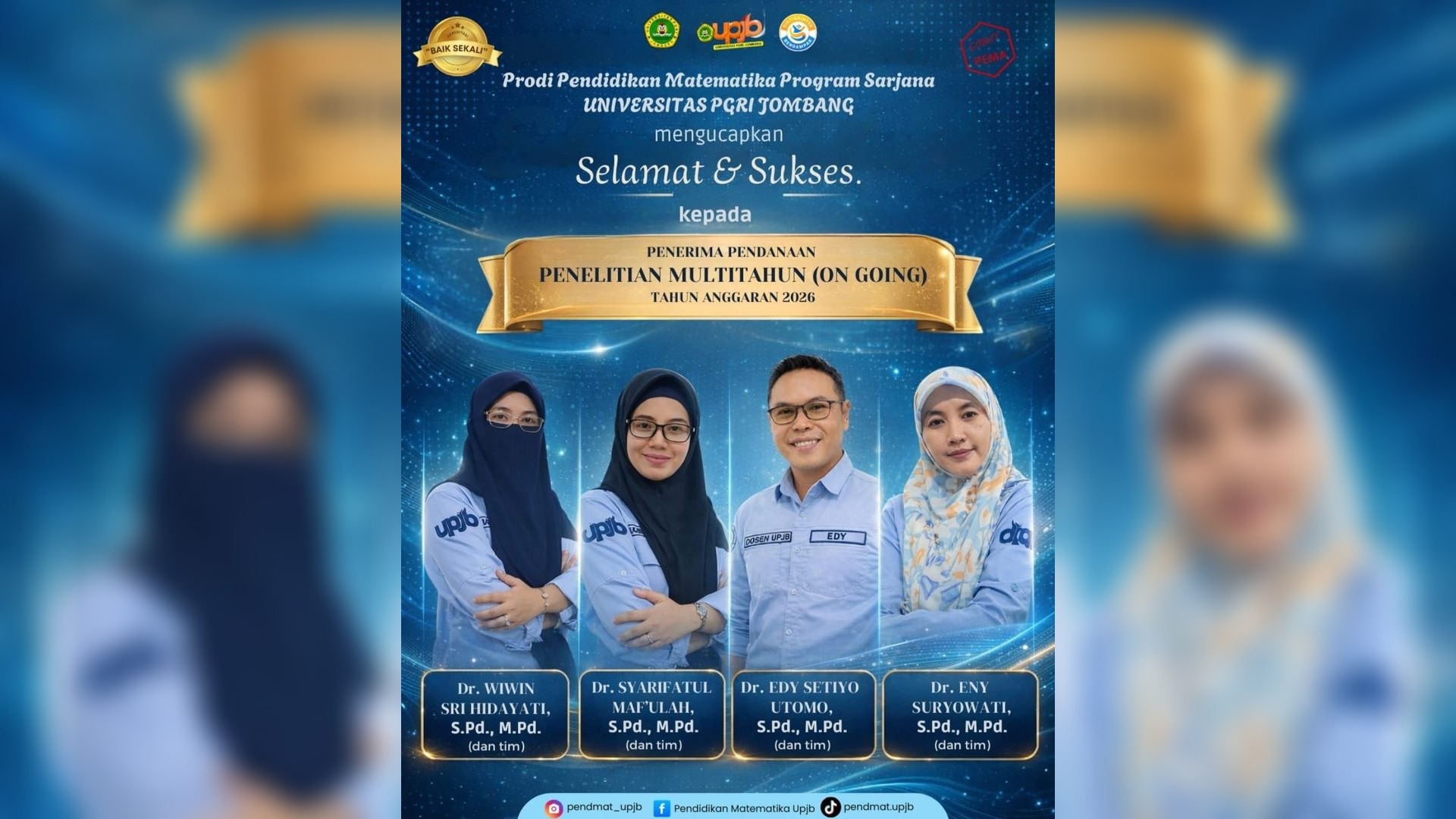Program Studi Pendidikan Matematika Program Sarjana Universitas PGRI Jombang terakreditasi Baik Sekali oleh Lembaga Akreditasi Mandiri (LAMDIK). Merupakan Program Studi Pendidikan Matematika Tertua di Jombang dengan sebaran alumni terbesar dan prestasi alumni yang membanggakan.