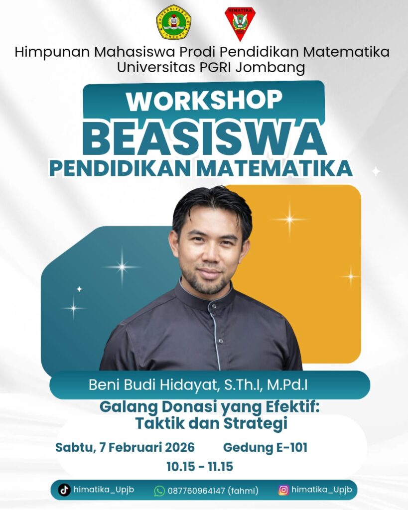 Sebagai bentuk Optimalisasi Manajeman Beasiswa Himatika, HMP Pendidikan Matematika UPJB menyelenggarakan Workshop dengan tema Galang Donasi yang Efektif: Taktik dan Strategi.
